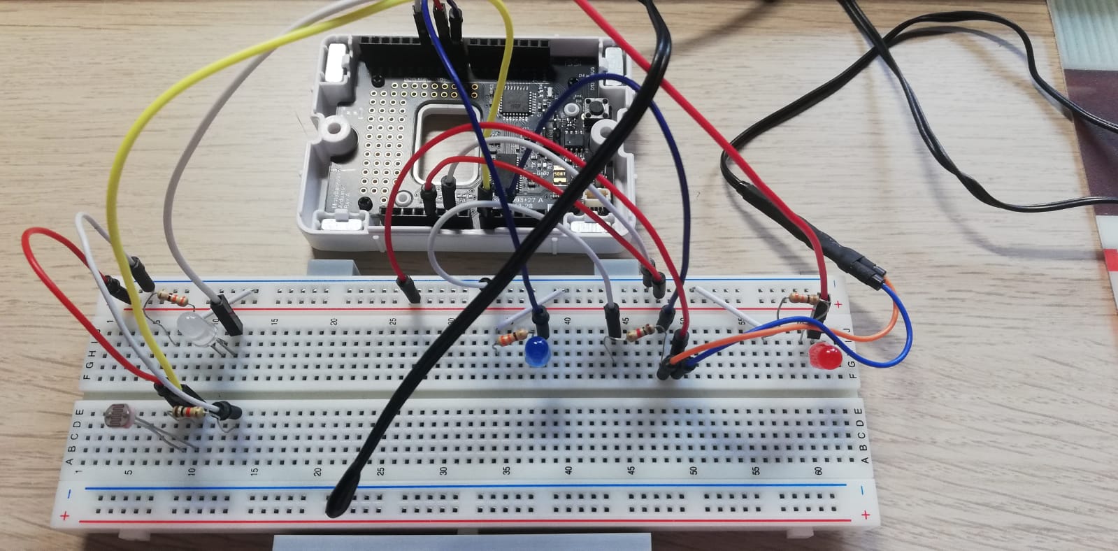 In this void setup, you open the serial and set the pins you’ll use in this project. In this void loop, you read the sensors and write a specific serial message based on your conditions: