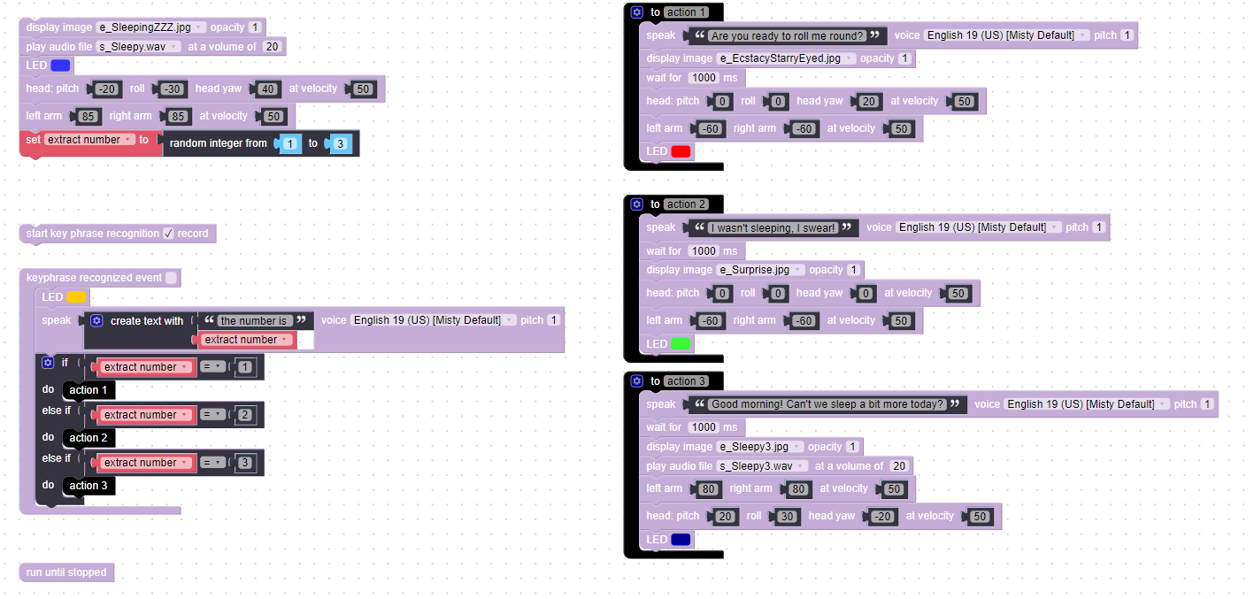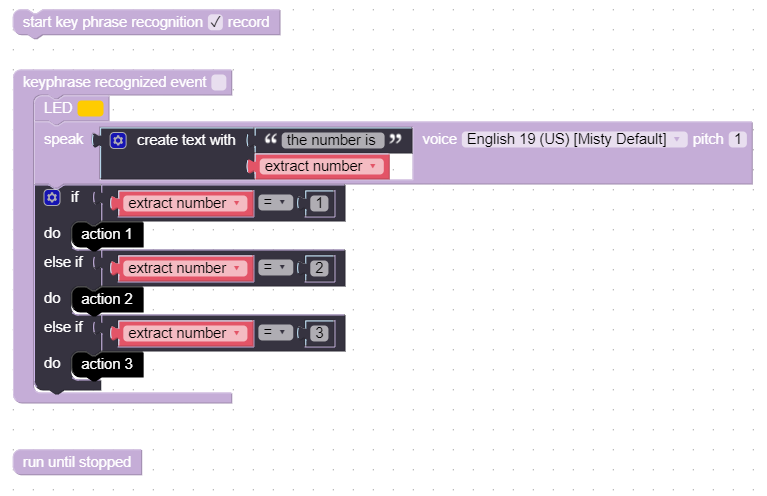 We'll use the extracted number to select one of the three actions that Misty can do while she listens to the[ Misty word](https://lessons.mistyrobotics.com/blockly-lessons/lesson-8-nlp#wake-misty-up).