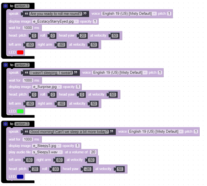 Use NLP blocks to build your very original conversation with Misty including your context in the first state and your actions in the next ones
